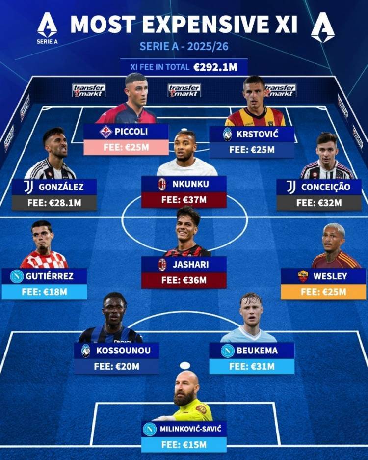 意甲今夏最贵签约阵容:恩昆库、亚沙里、小孔塞桑、别克马在列